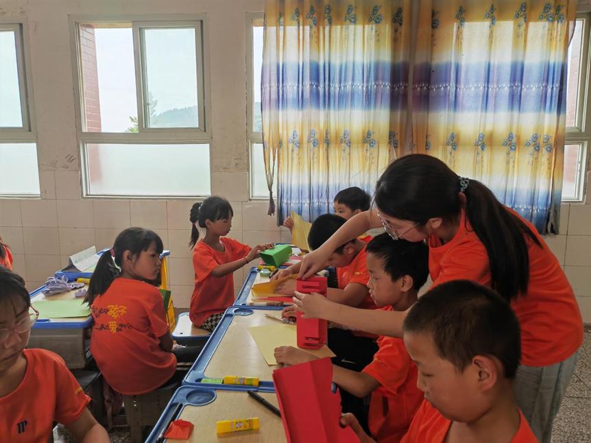 7月26日,华中师范大学辰星支教队(以下简称“辰星支教队”)于湖北省十堰市郧阳区南化金叶希望小学开展了第十一天的工作。辰星支教队队员为学生们带来了“书法之软笔书法”与“手工之装饰柱”等一系列素质课程。队员们在课程中穿插中国传统文化,以文墨润心,以传统铸魂,引导学生立德树人、成才明志。